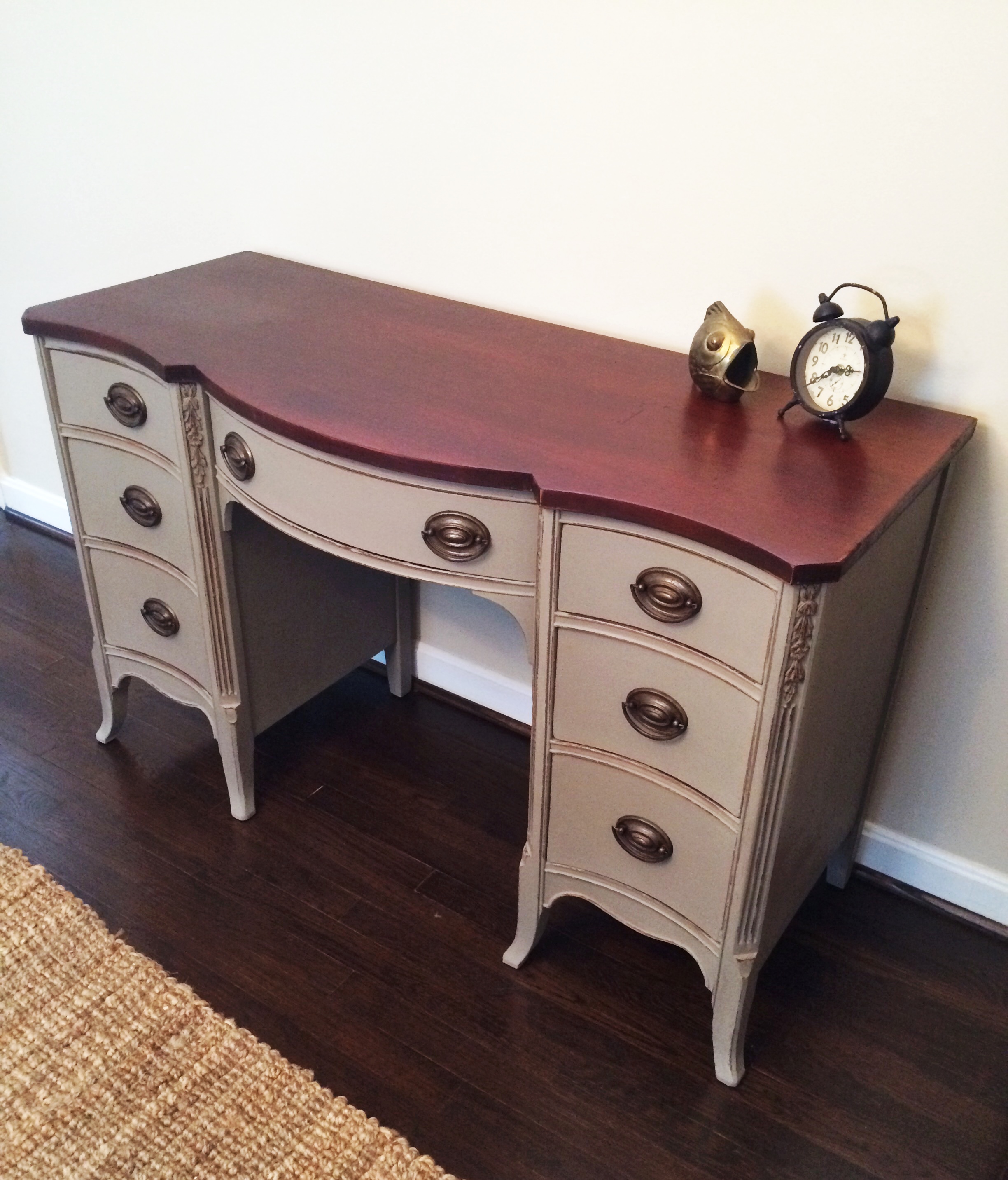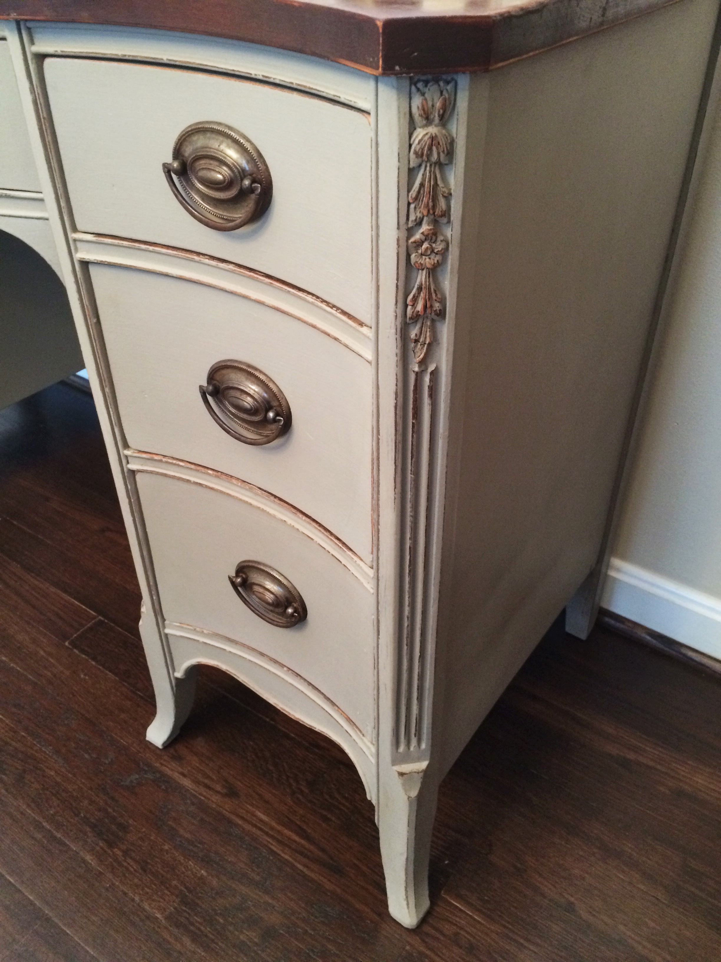 I took the Annie Sloan Chalk Paint 101 course in January and loved it! This desk is my very first chalk paint project – and found it on Craigslist for $20!