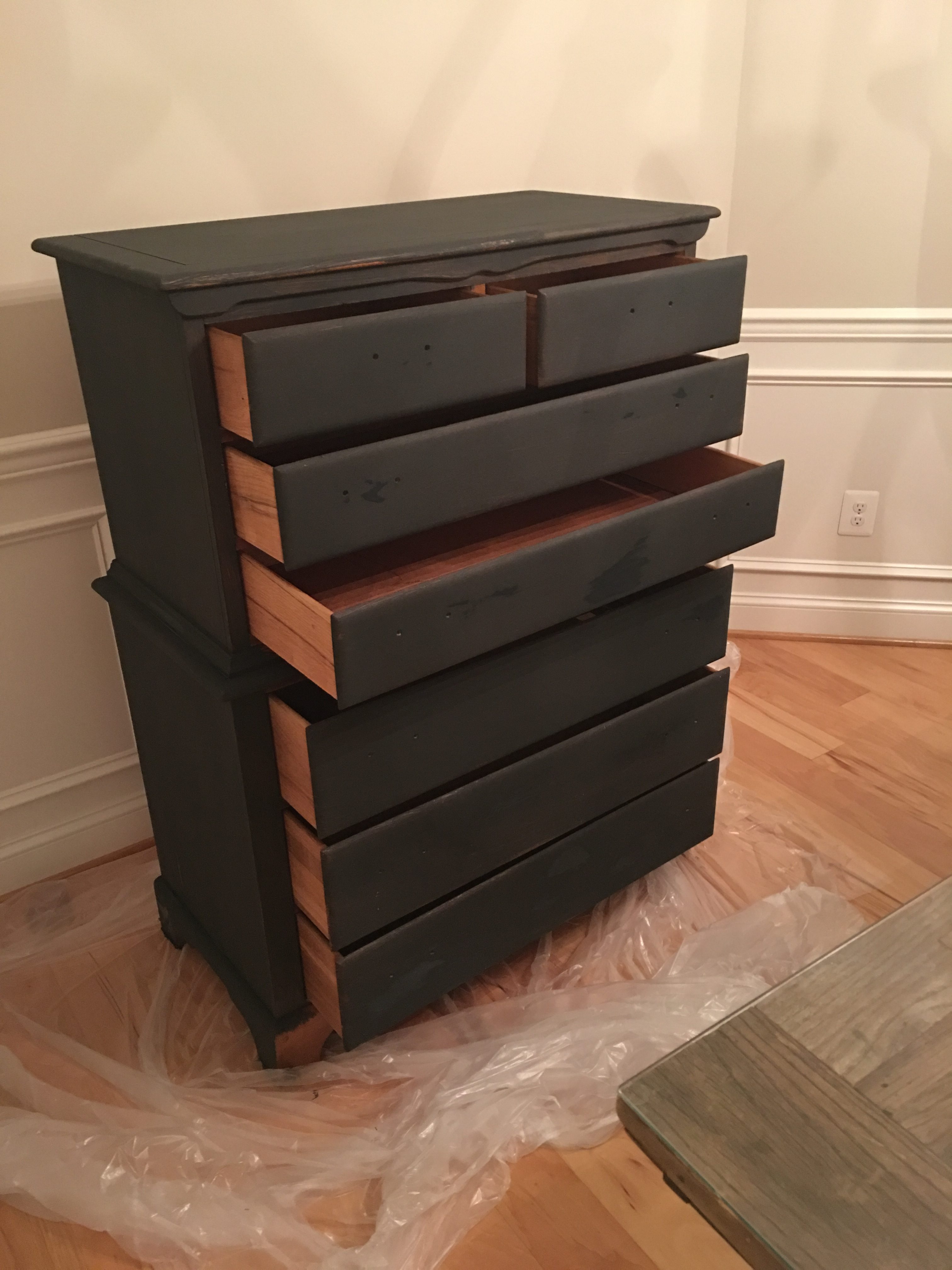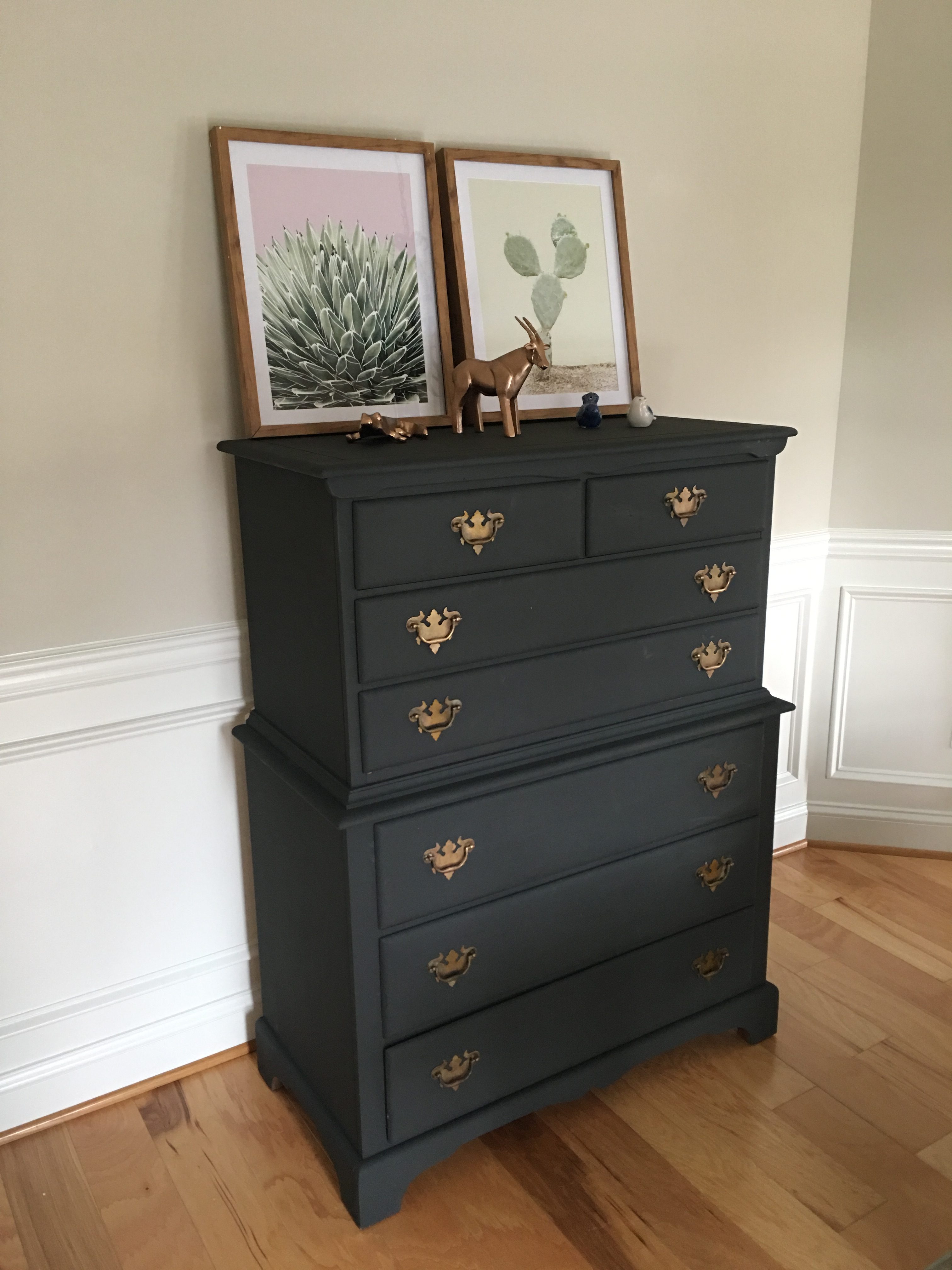 Like so many of us, Sarah had a piece of furniture that ad been in the family (it was her dad’s child hood dresser!) that was in beautiful condition, but maybe wasn’t quite her style. But thanks to a couple coats of graphite paint, she made it her own!