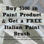 PROMOTION EXTENDED from Tuesday June 16 – June 20th at midnight. We are doing a little promotion in the shop and online to help you all get motivated to “refresh your space”! If you buy $100 in any of our paint lines online or in the shop (full priced items $100 before tax) you will give you one of our small oval Italian paint brushes (value $30.50). Come in and see us!