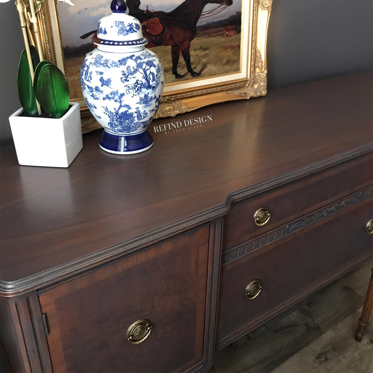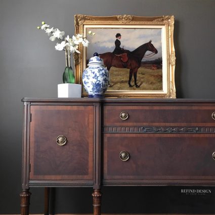 We are so excited to share this week’s furniture transformation, which was our staff pick for best transformation in March. It comes to us courtesy of the super talented Jilian Moncada of ReFind Design. Jilian, like us here at Stylish Patina loves to take traditional, vintage furniture pieces and give them a modern finish. She discovered her passion for refurbishing furniture after leaving her career in fashion to stay home with her two young daughters. In doing so, she discovered a passion that has since spun in to her opening ReFind Design in 2014.