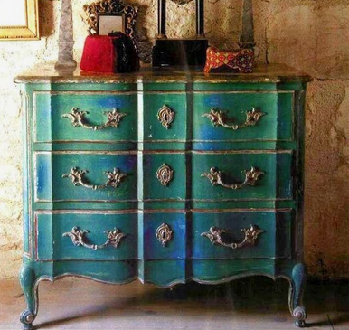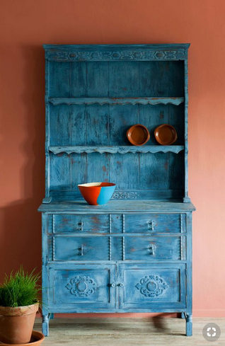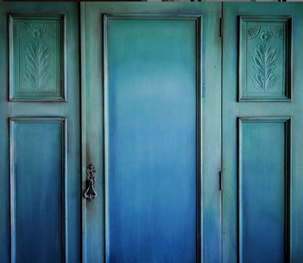 Throughout the Mediterranean, Greek Blue can be found on rustic doors, shutters and furniture often faded and distressed. It’s also a color that works well in a neoclassical interior deepened a little with dark wax.