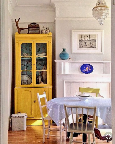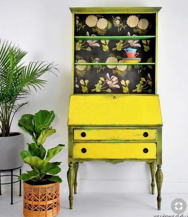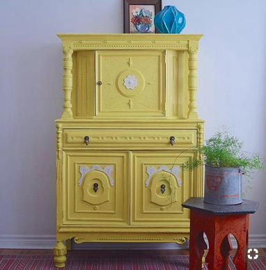 This color combo is to die for! This beautiful lounge area is brought to us by Annie Sloan’s Instagram page. We absolutely love this yellow antique side table. It goes perfect with the creamy blue colored wall and the small sofa chair. The coral of the chair blends perfectly in with the antique table. Be sure to check out Annie Sloan’s Instagram, Pinterest, and You tube for some inspiration!