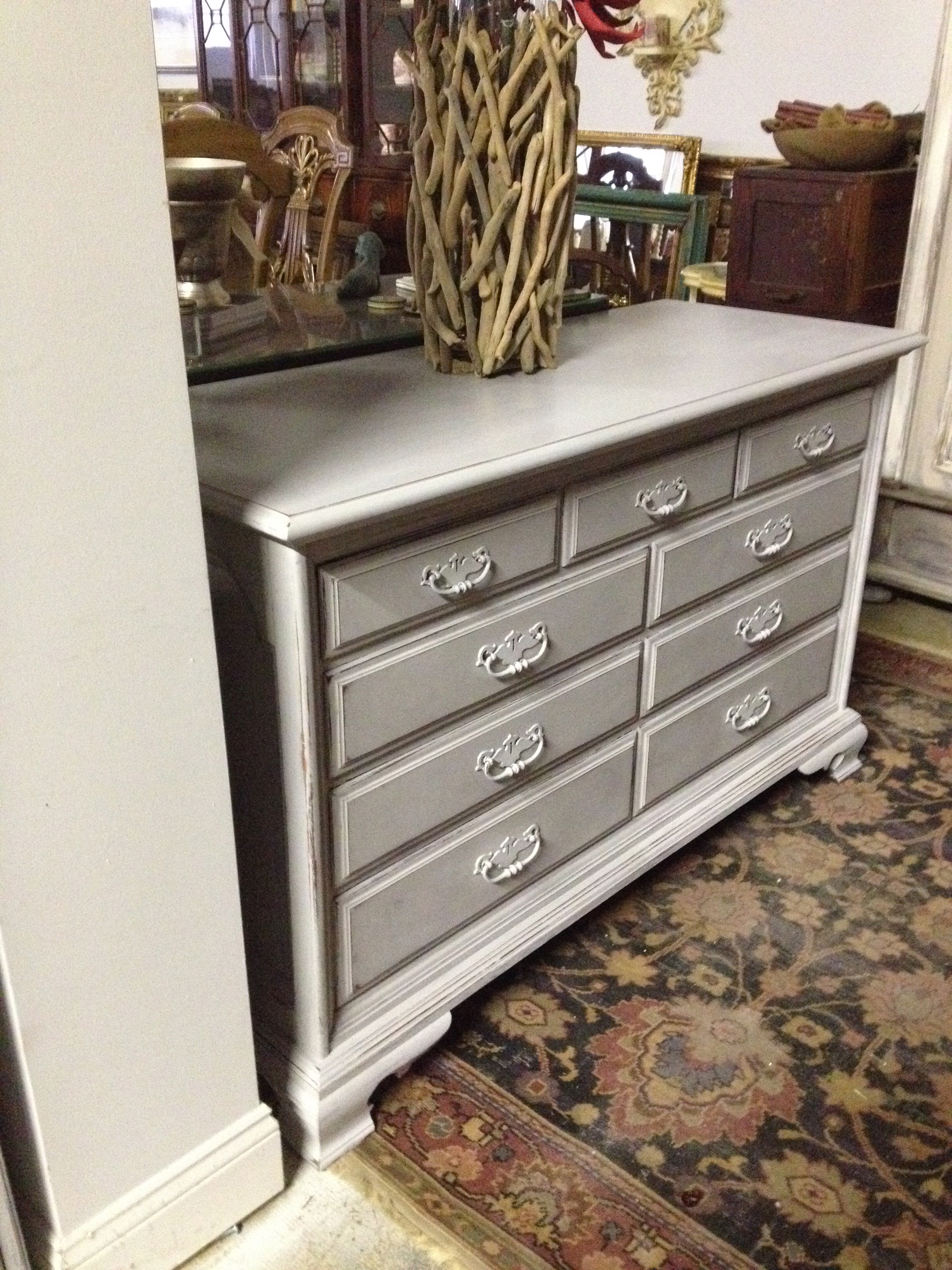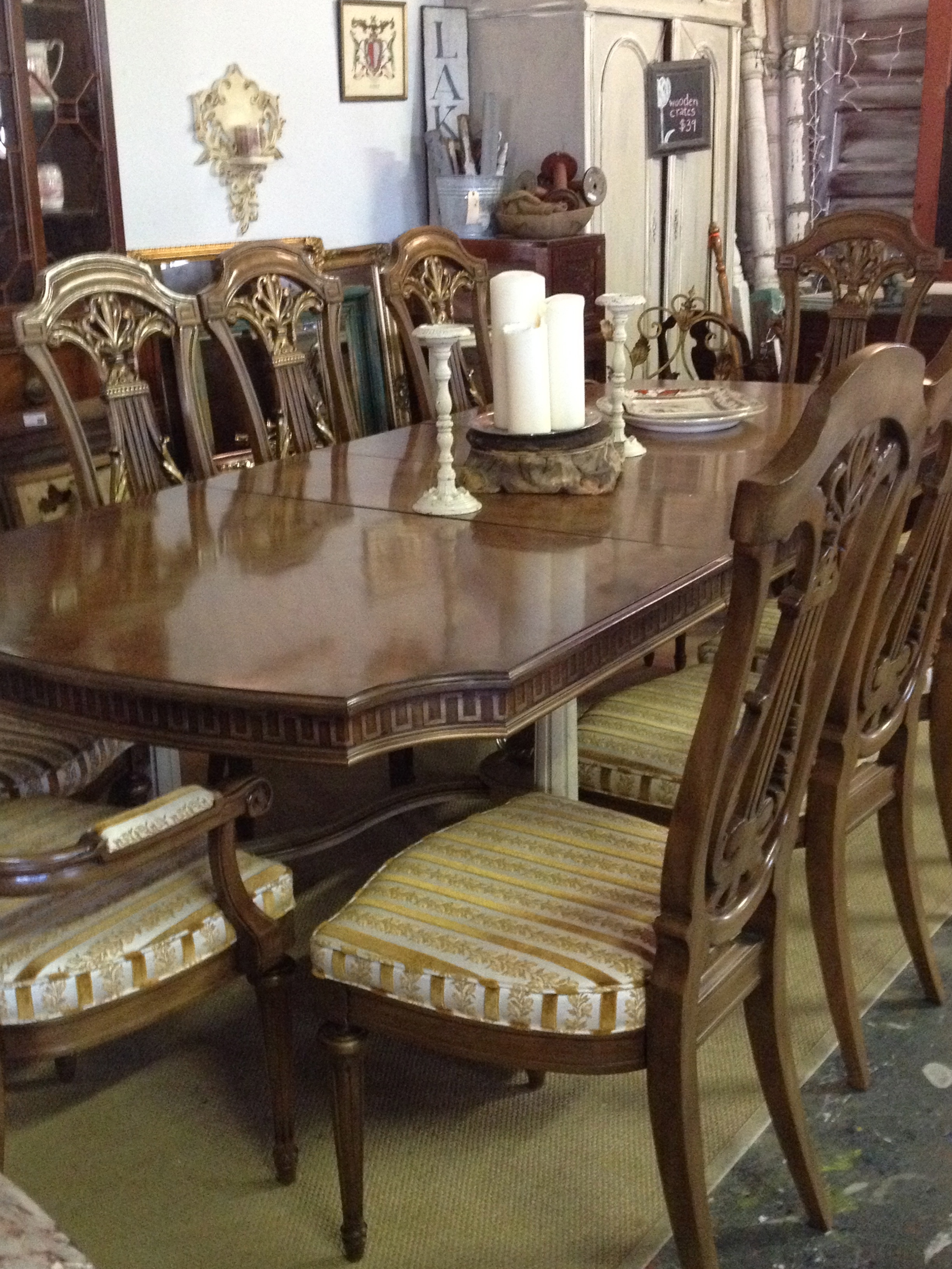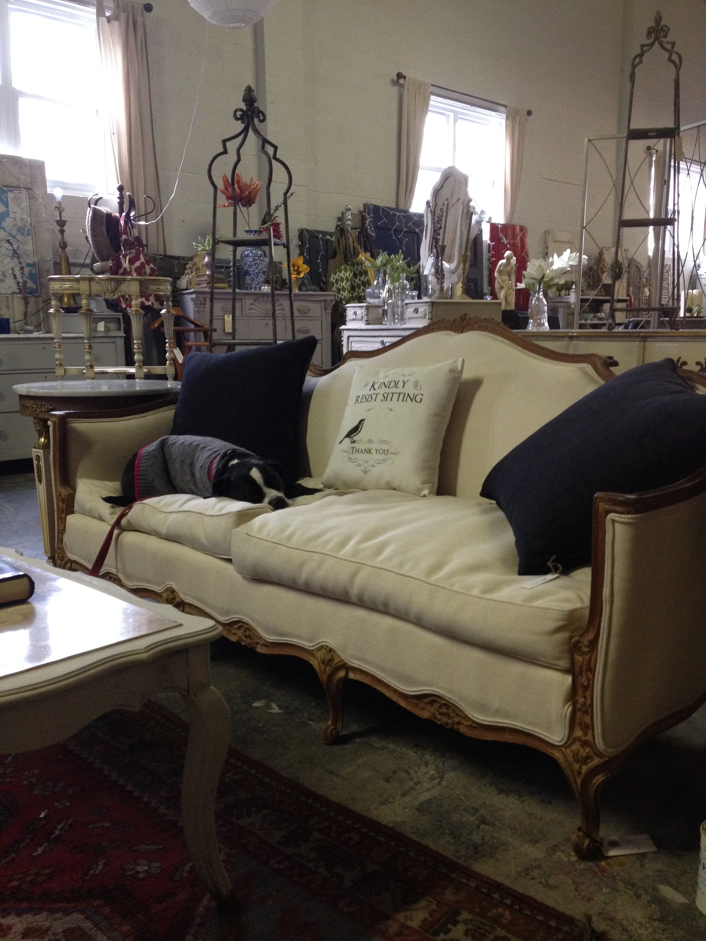 I even dressed up Bucky for the occasion. We have tons of great frenchy items if that is what you are looking for this month. We also have some gorgeous refreshed dressers & desks as well as an amazing French Table & Chair set (2 leaves & 10 chairs in mint condition).