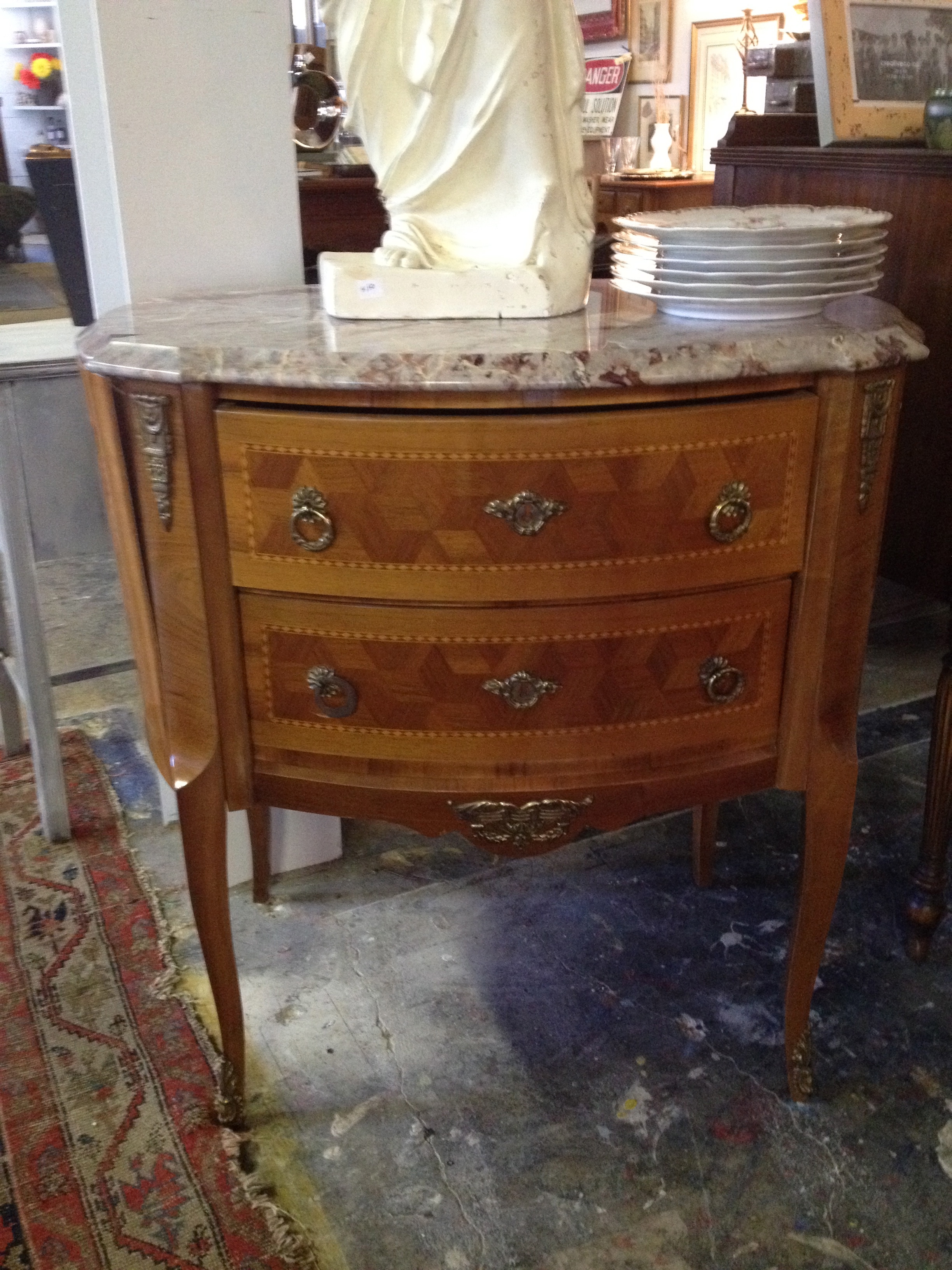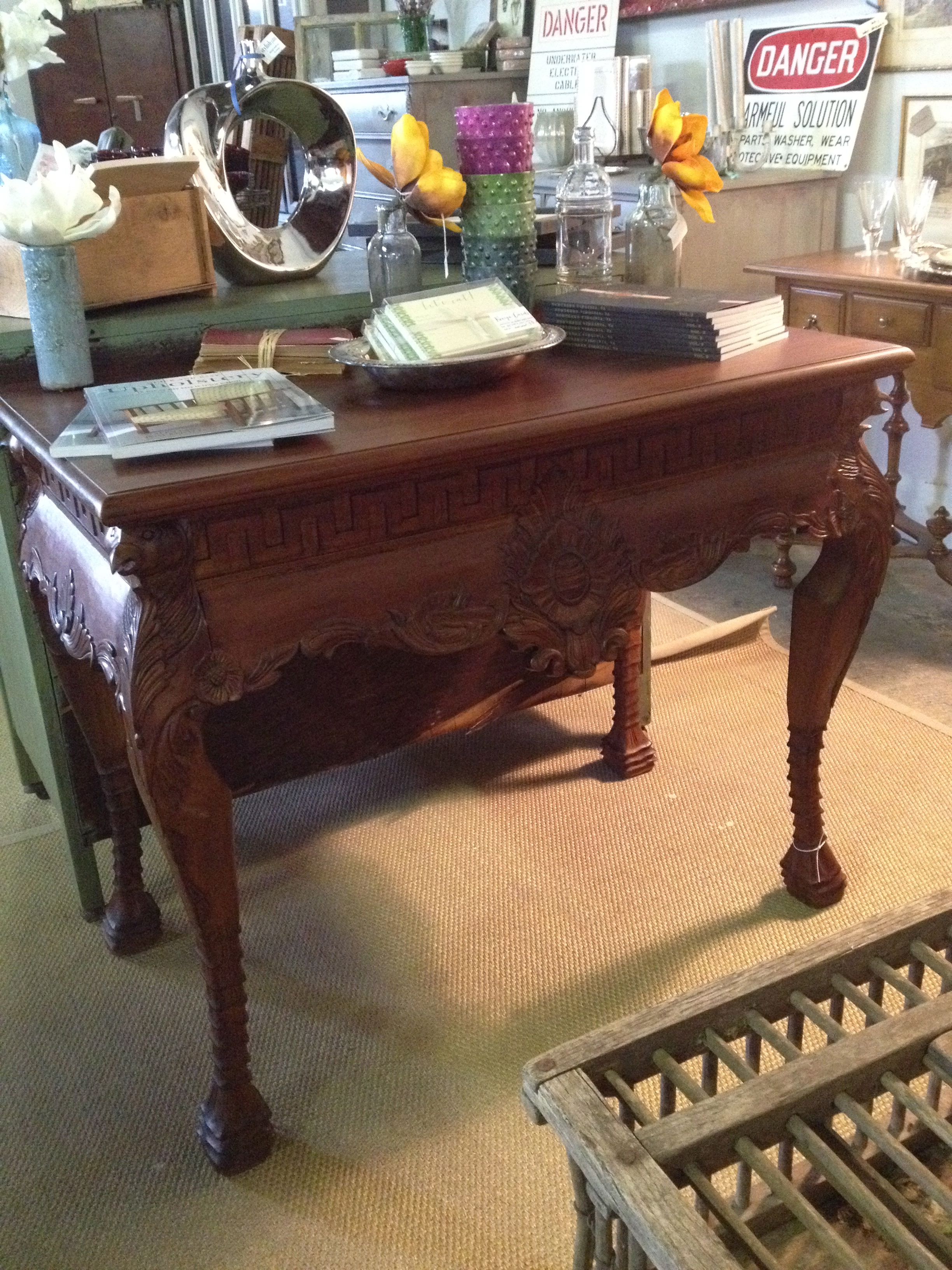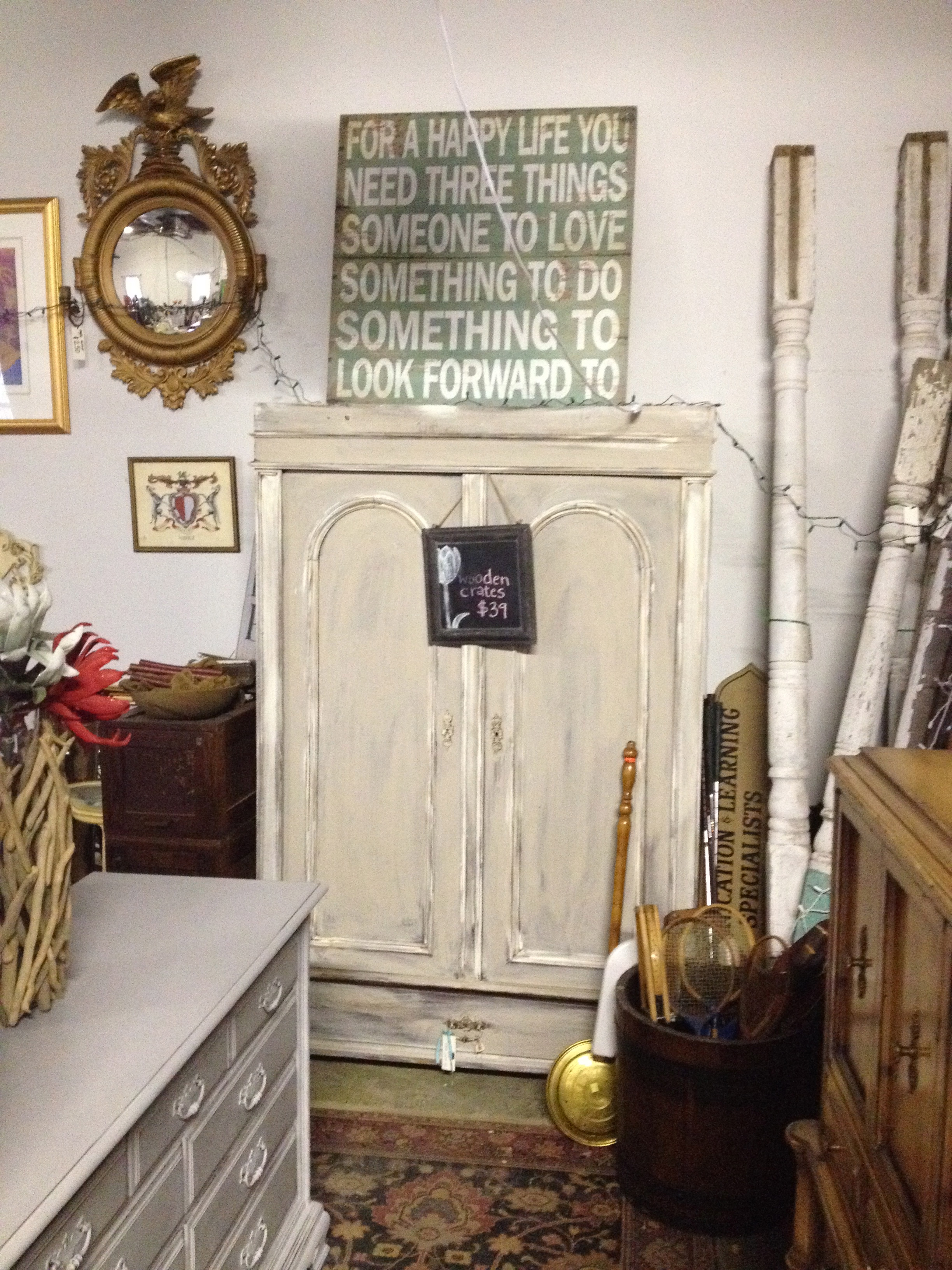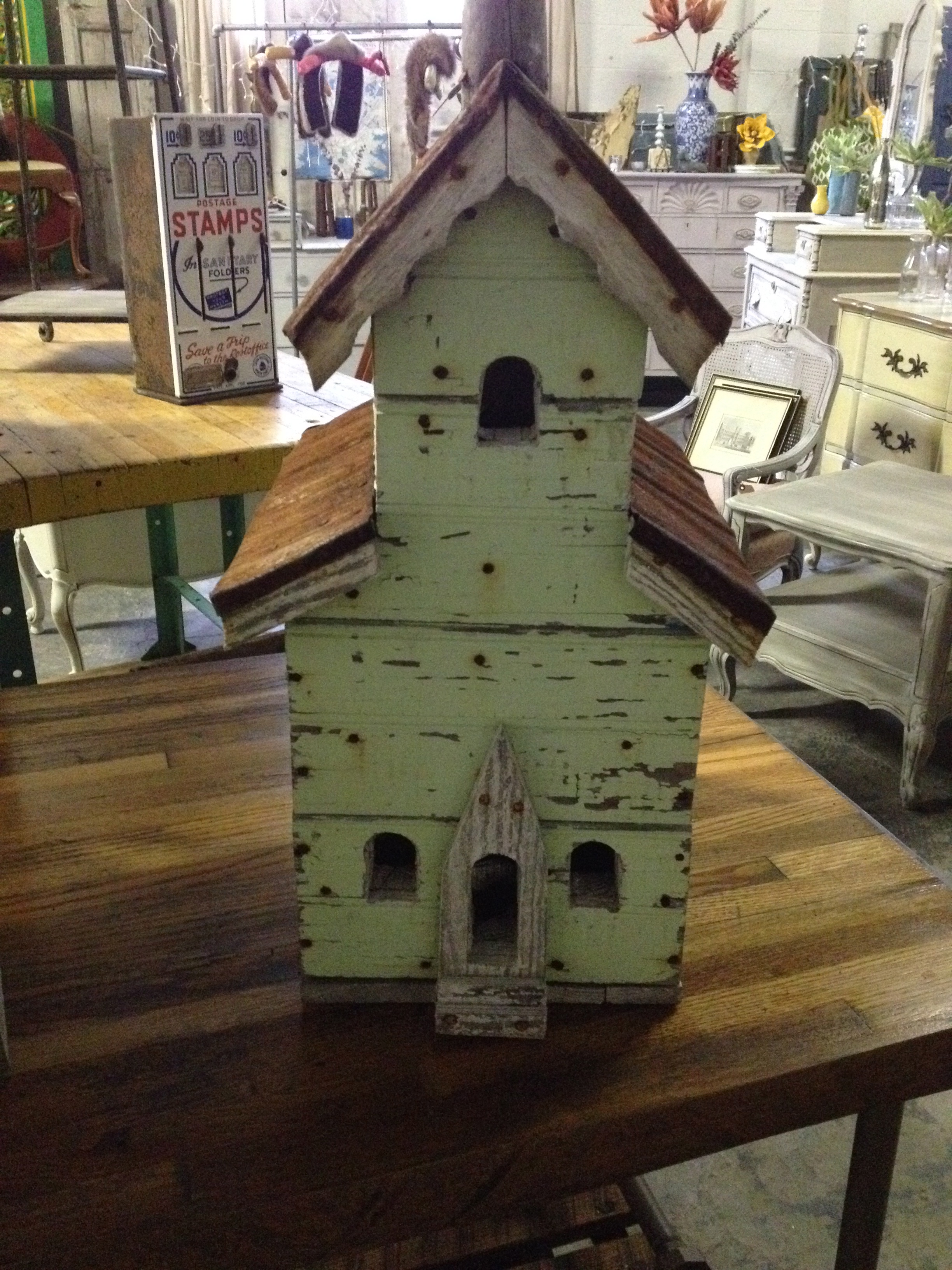 I even dressed up Bucky for the occasion. We have tons of great frenchy items if that is what you are looking for this month. We also have some gorgeous refreshed dressers & desks as well as an amazing French Table & Chair set (2 leaves & 10 chairs in mint condition).
