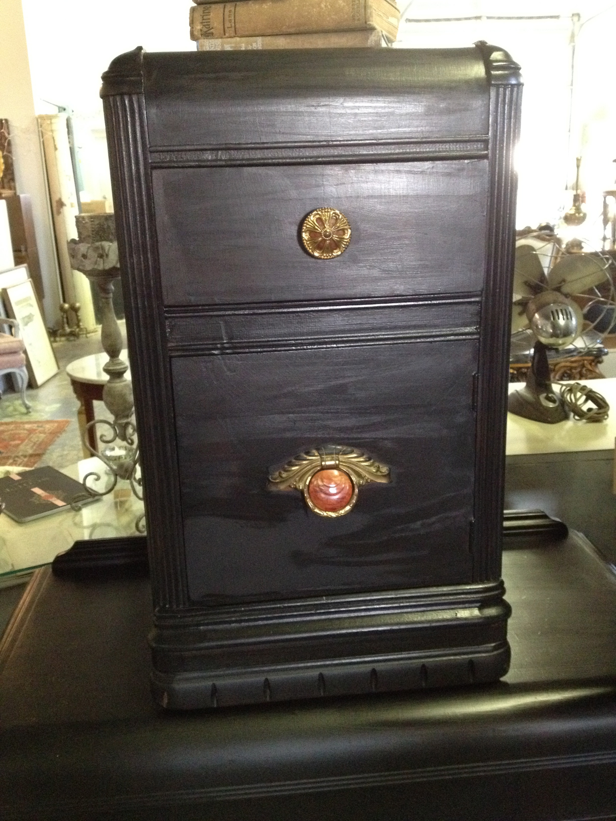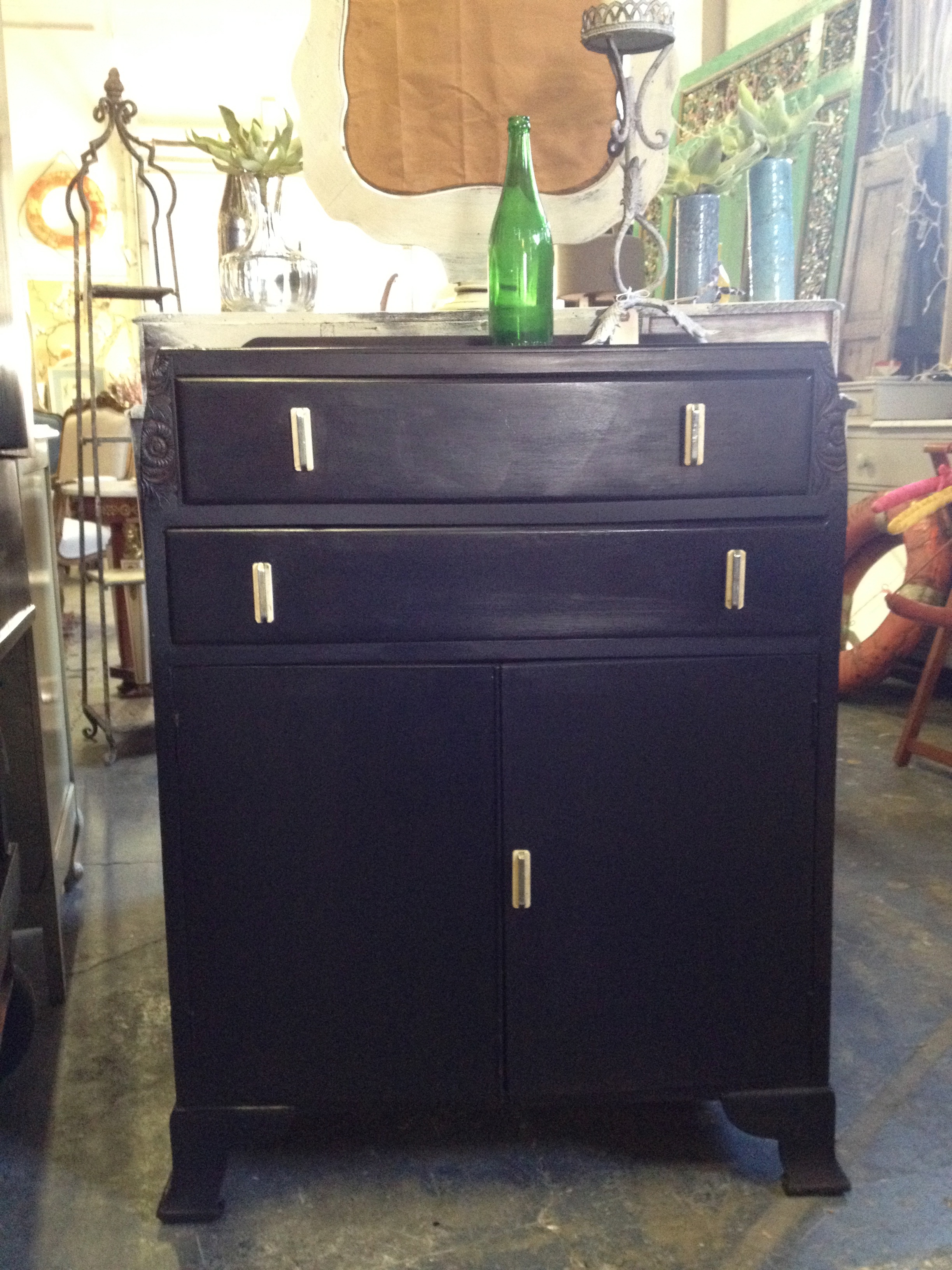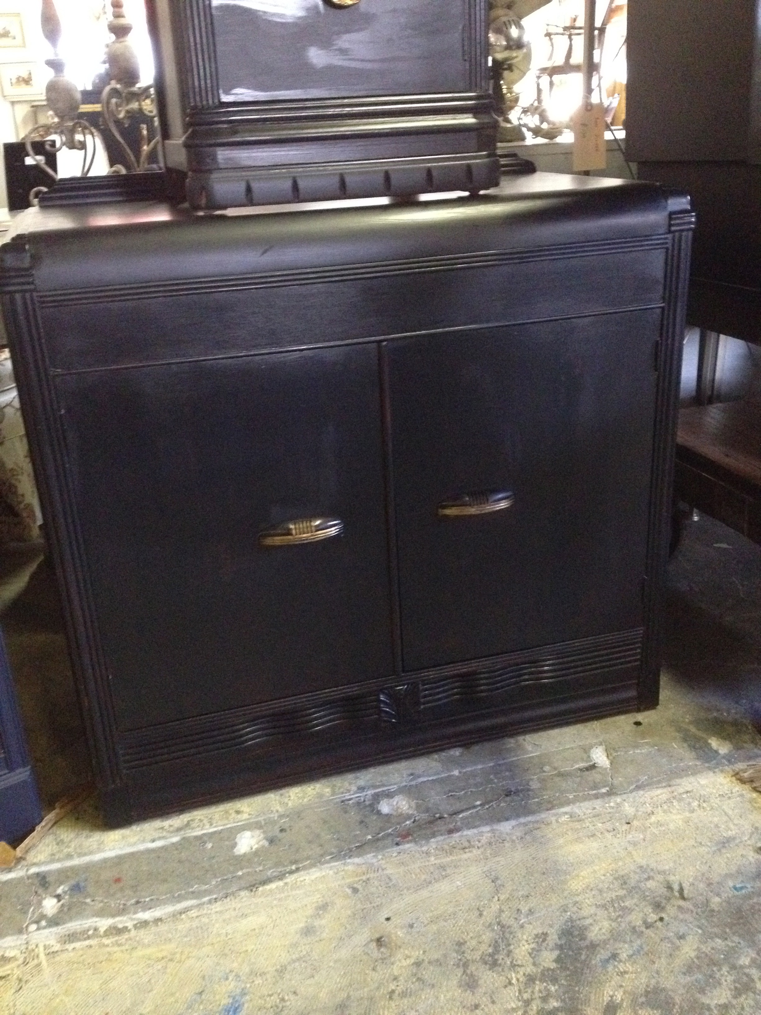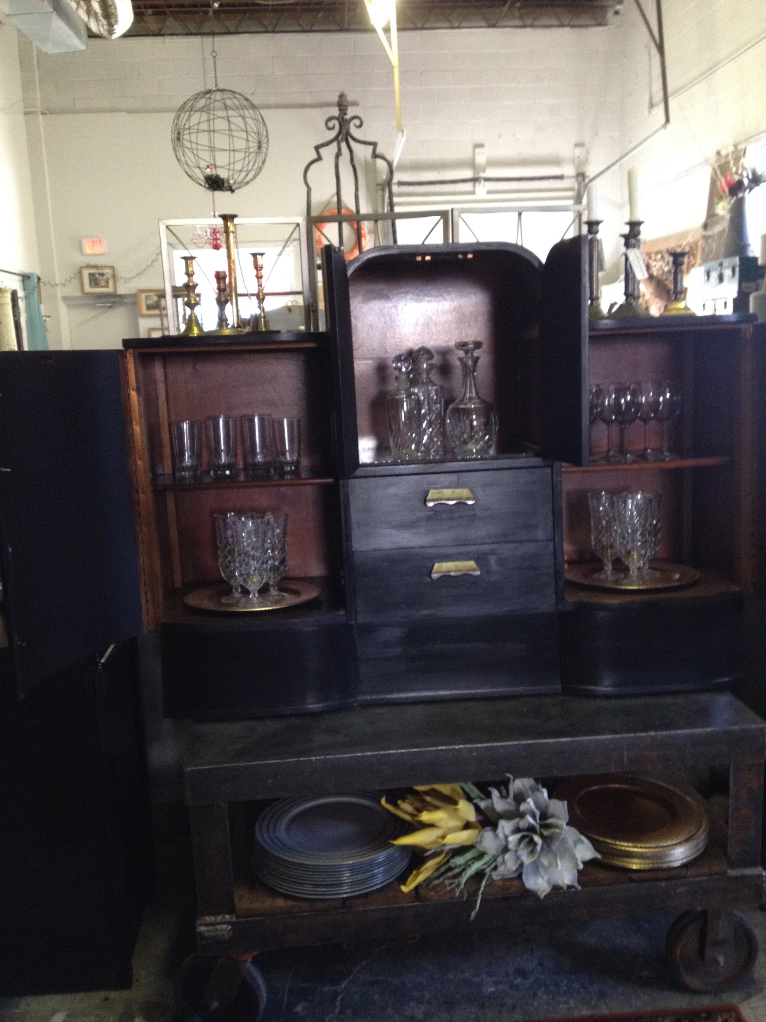 And finally we have some really fun Art Deco pieces that we painted black. One of them is this fabulous bar. Take a look…