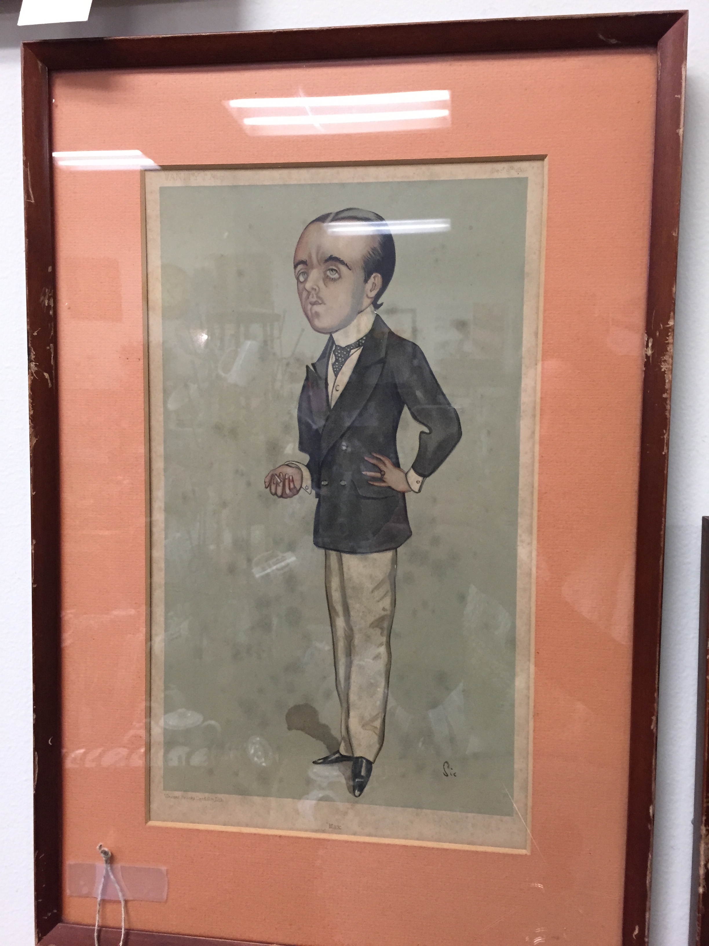 The prints in question are humorous caricatures of figures from the late nineteenth and early twentieth century. They were issued in Vanity Fair, which from 1868 until February 5, 1914, was a weekly magazine of social, literary and political content, published to the delight of Victorian and later, Edwardian England. Most popular of its features were these wonderful full page caricatures of famous men and women of the day, prints that remain Vanity Fair’s great legacy.