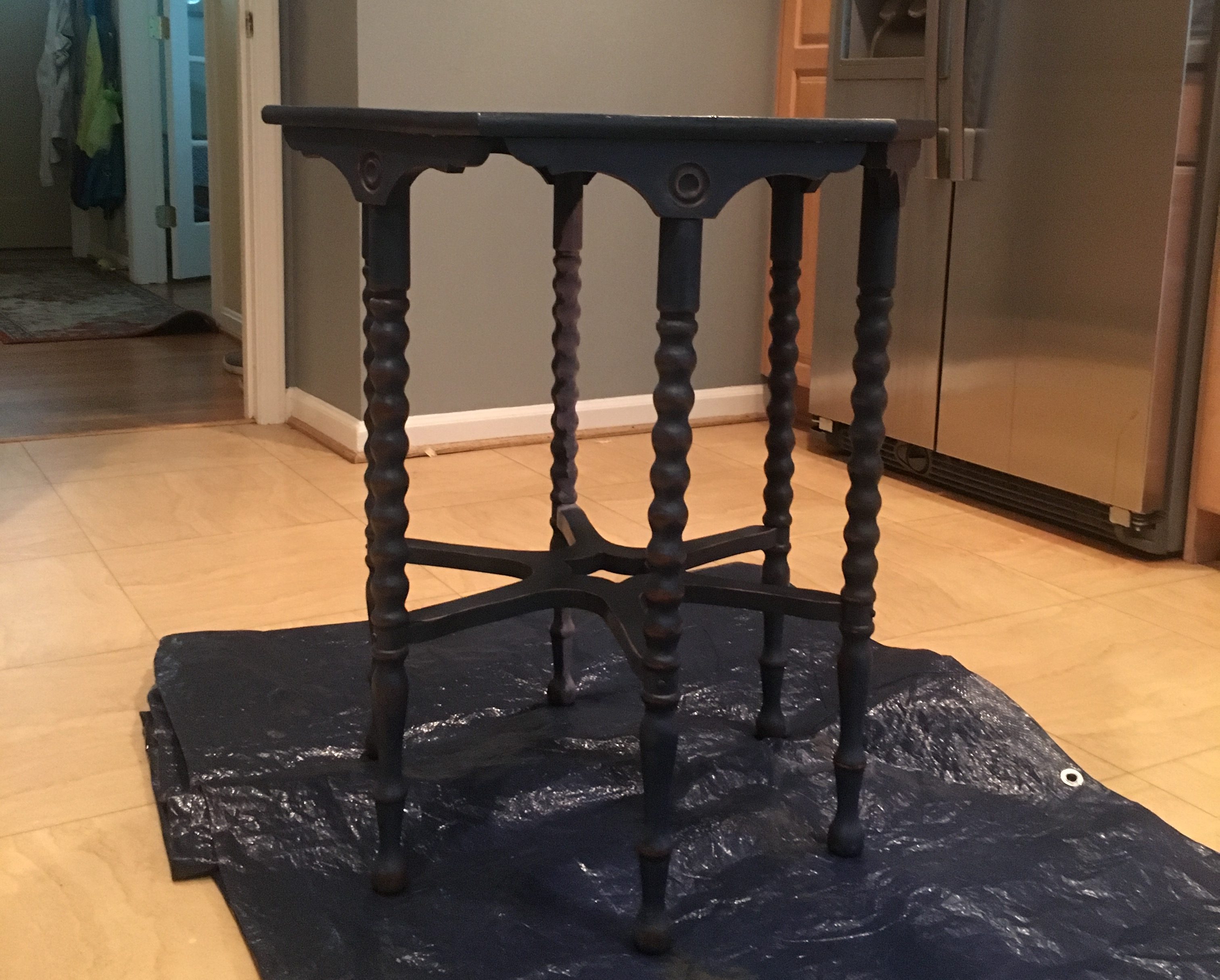 I found this table during one of my trips out to Lucketts a few years ago and I was obsessed with the legs and unique shape of the table. It started as a really nice rich blue color, but overtime it started showing a lot of wear.
